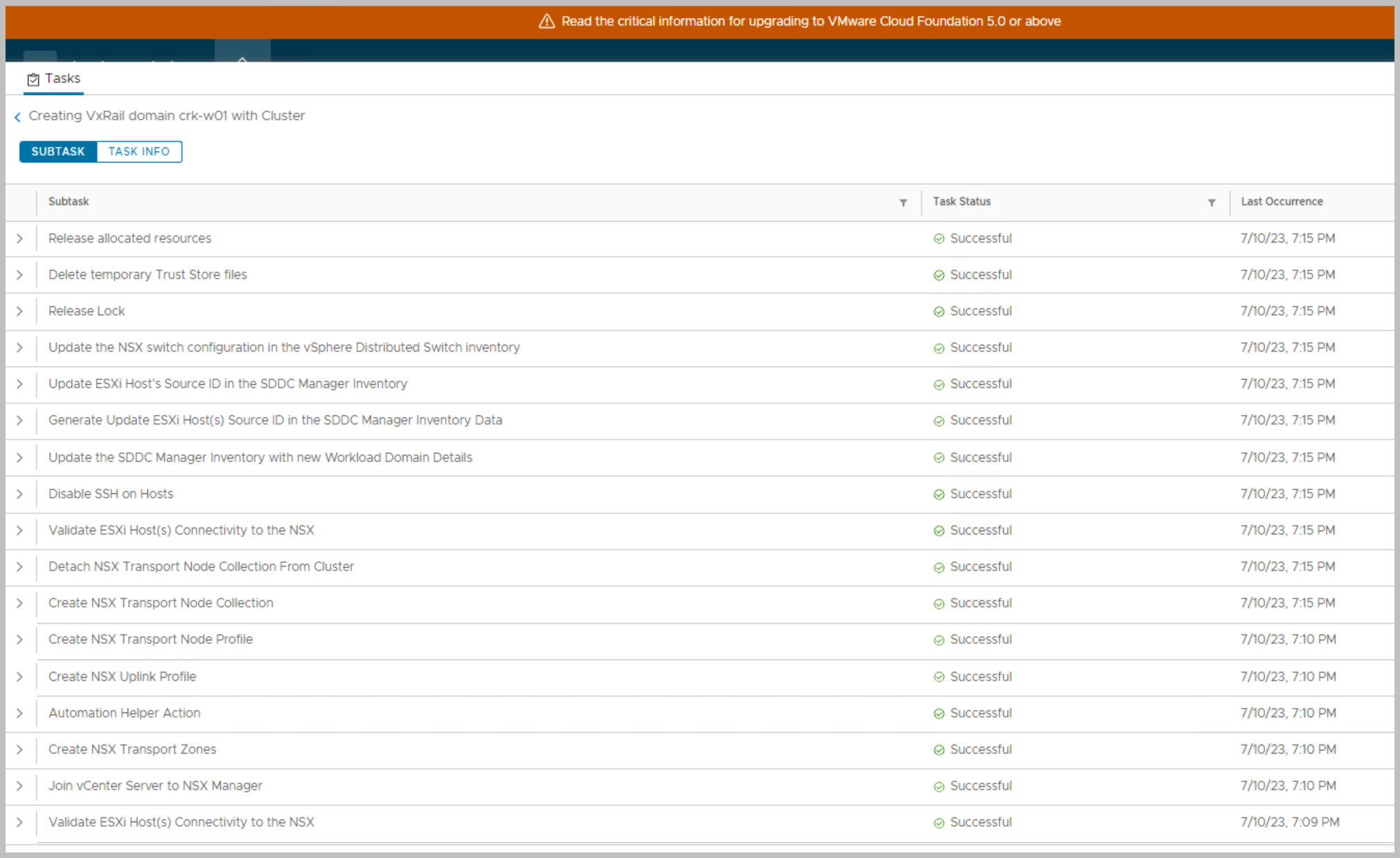 This is the 2nd in a series of posts covering VCF 5.0 On VxRail 8.0.100. The following post provides an example walkthrough covering the process of deploying a VI Workload Domain using the UI for Workflow Optimization method.