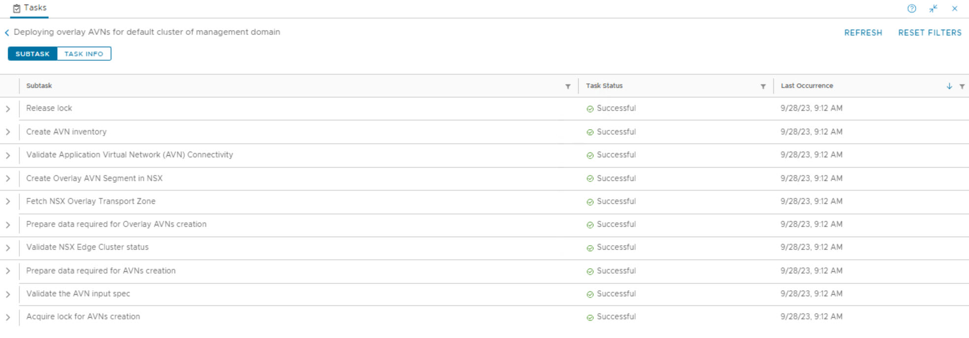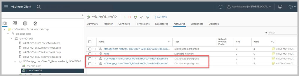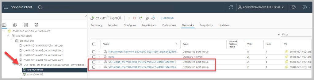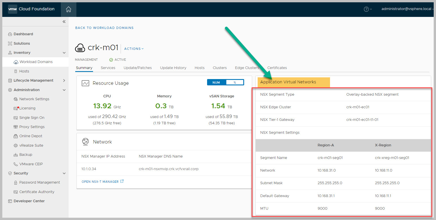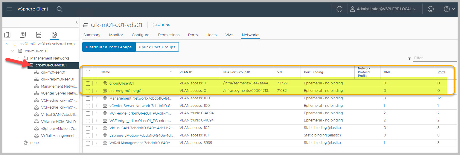 On completion we can view the newly deployed and configured AVNs from both the vCenter & SDDC Manager UI: