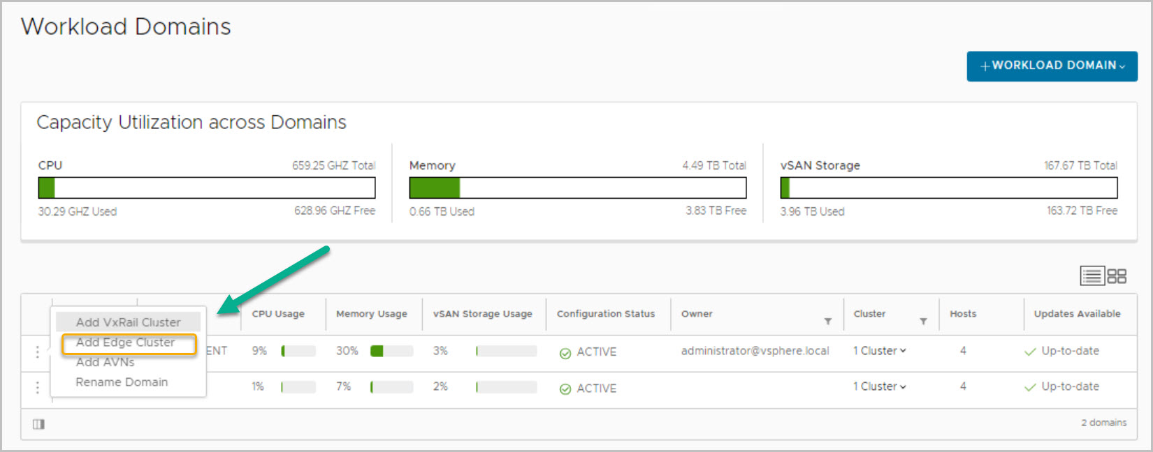 Go to SDDC Manager UI Select Inventory > Workload Domains Click on the name of the Management domain. Select Actions > Add Edge Cluster: