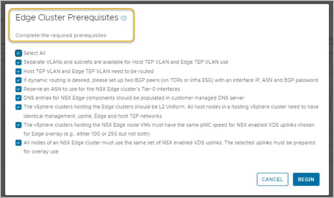 Please reference the VMware prerequisites Before you deploy an NSX Edge cluster: