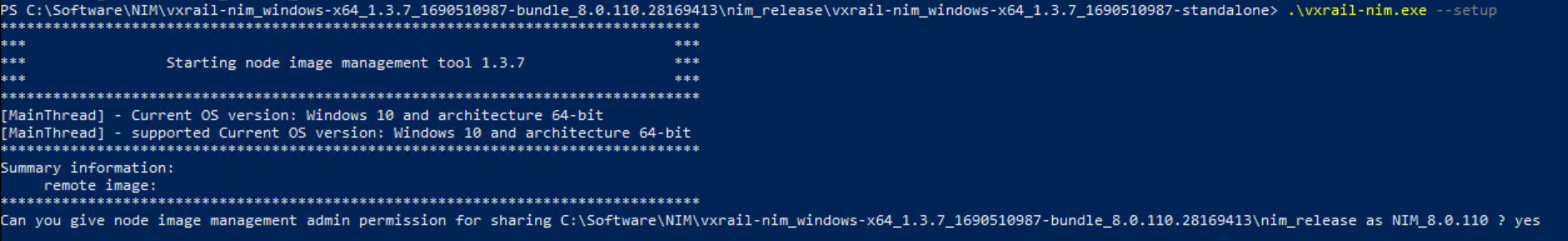 Next run the NIM client tool: .\vxrail-nim.exe --setup and provide the permissions for sharing:
