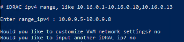 Enter the iDRAC IP range for the hosts being imaged and selecting no to VxRail Manager network setup: