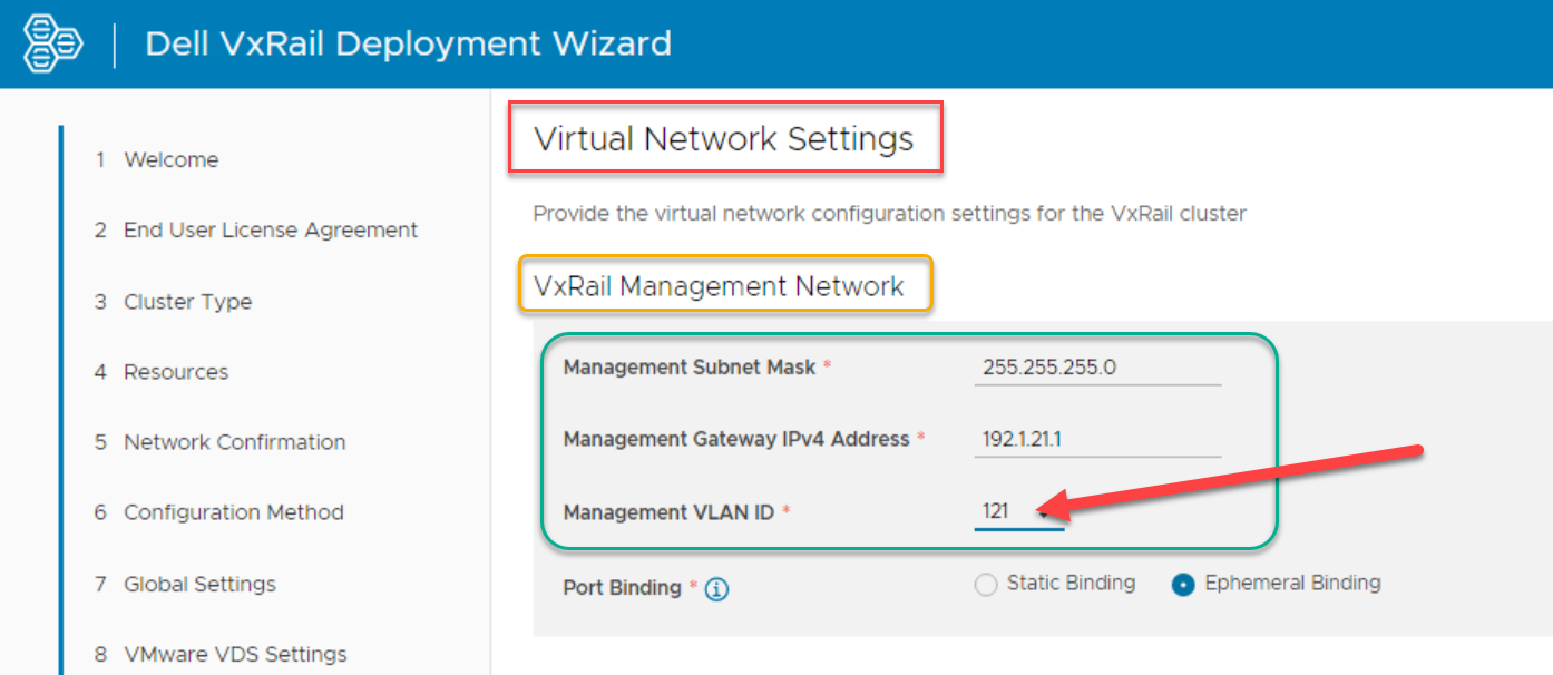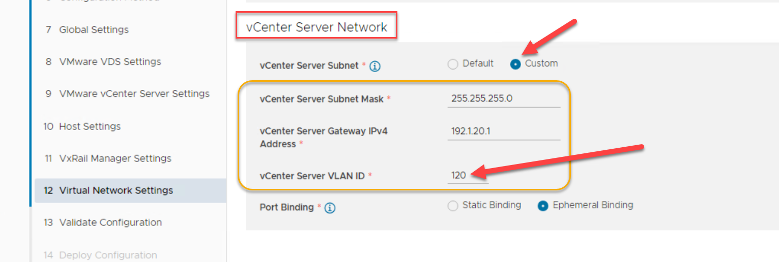 Prior to VxRail 7.0.350 both Management Network and vCenter Server Network distributed virtual port groups (DvPG) had a requirement to be on the same subnet & vLAN during day1 deployment. From VxRail 7.0.350 it is now possible to define a separate subnet & vLAN ID for the vCenter Server network during deployment. Thus allowing for the vCenter Server network to be on the same or different network as the Management network.
