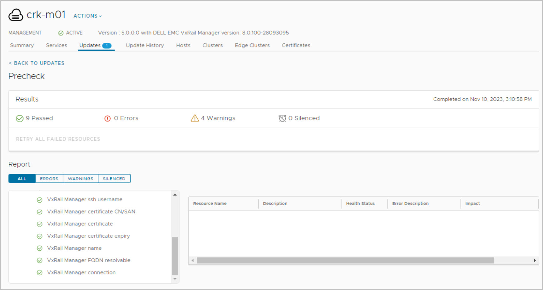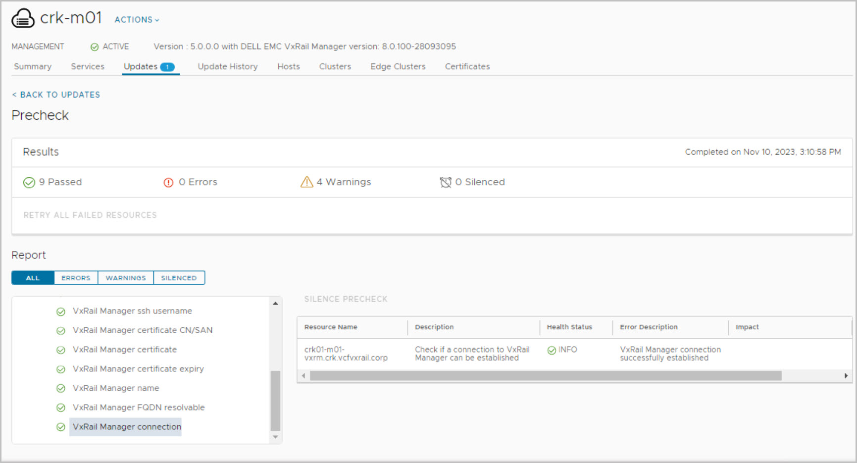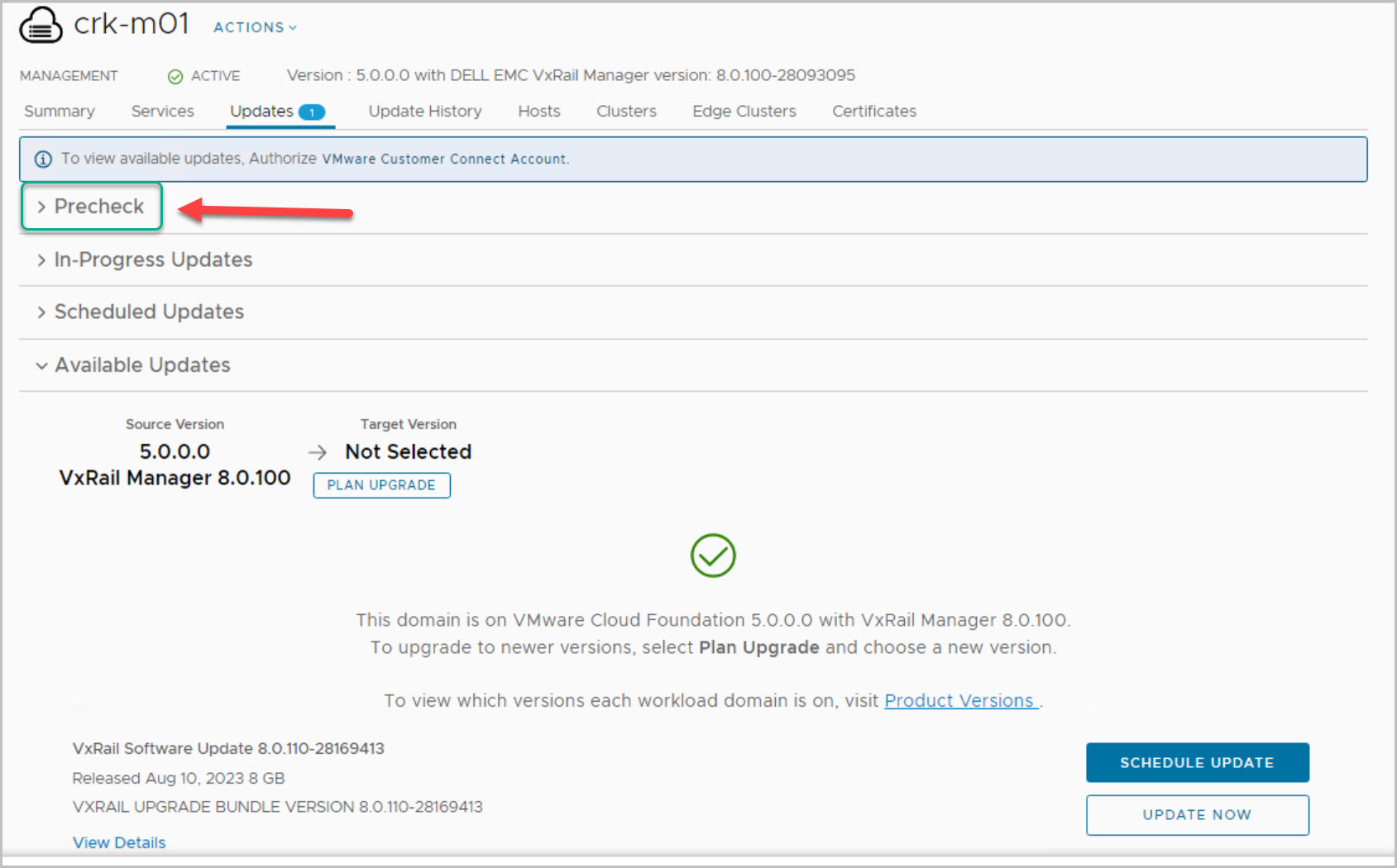 Before proceeding it is advisable to run healt pre-checks of your system. This example showcases the context level pre-check for VxRail (More details on context level prechecks here):