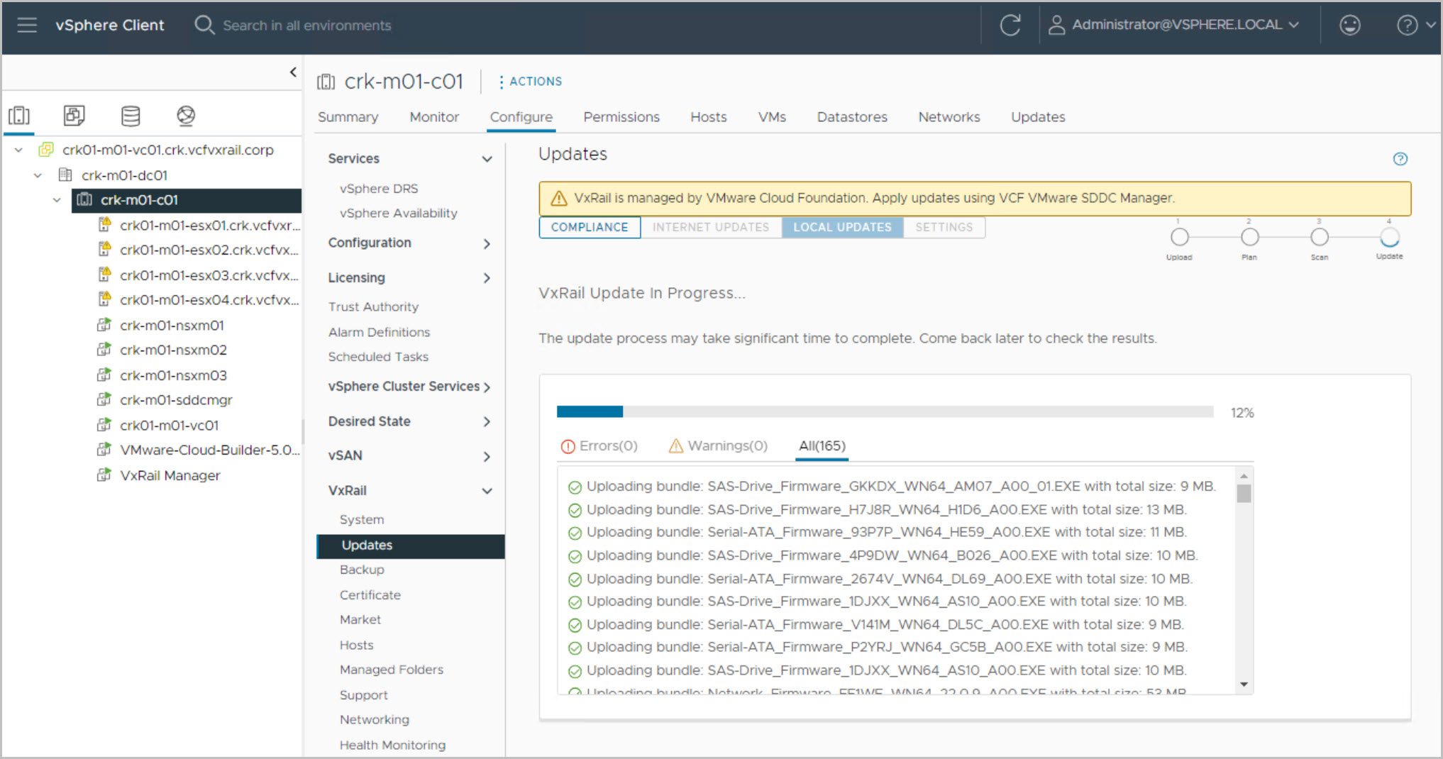 This example walks through the VxRAIL Async Patch prcedure in a VCF 5.0 On VxRail system: