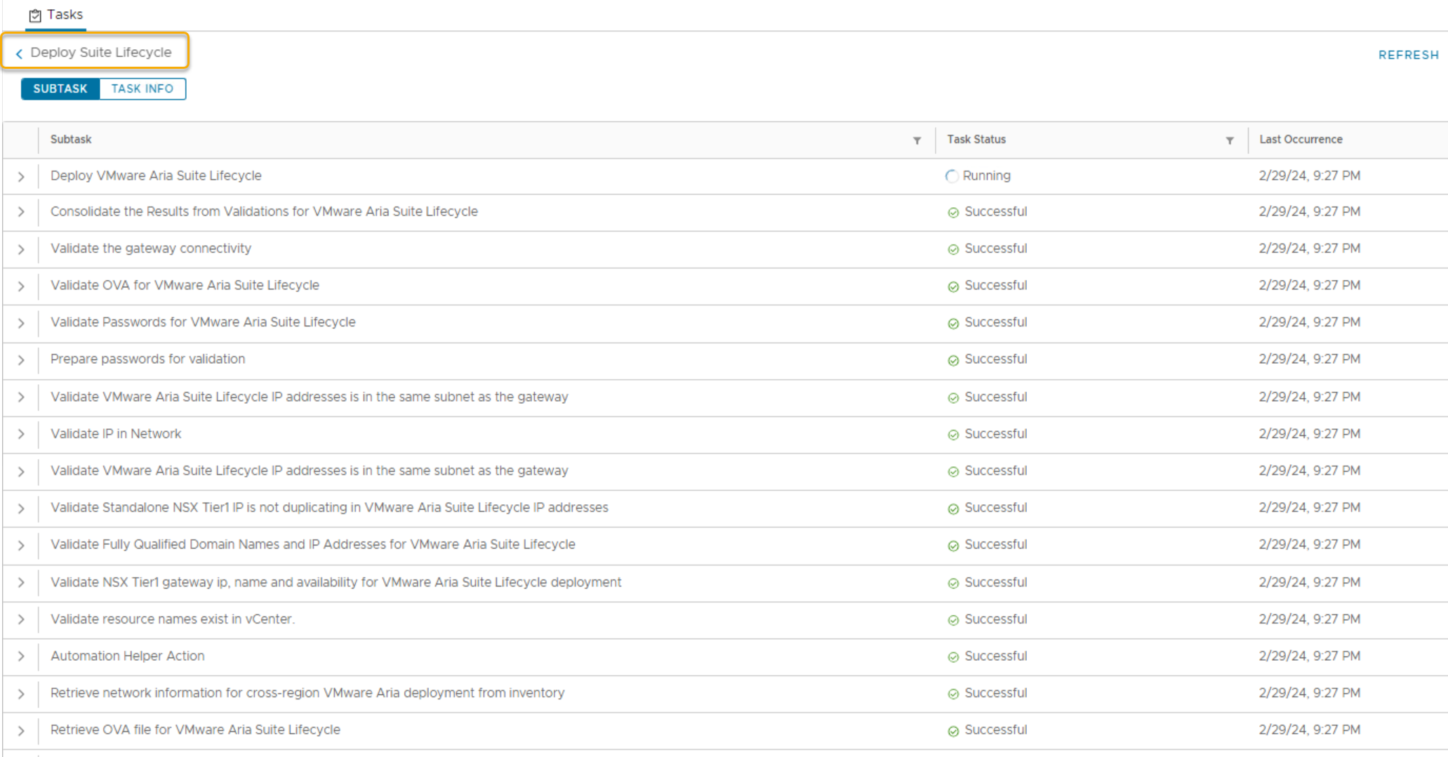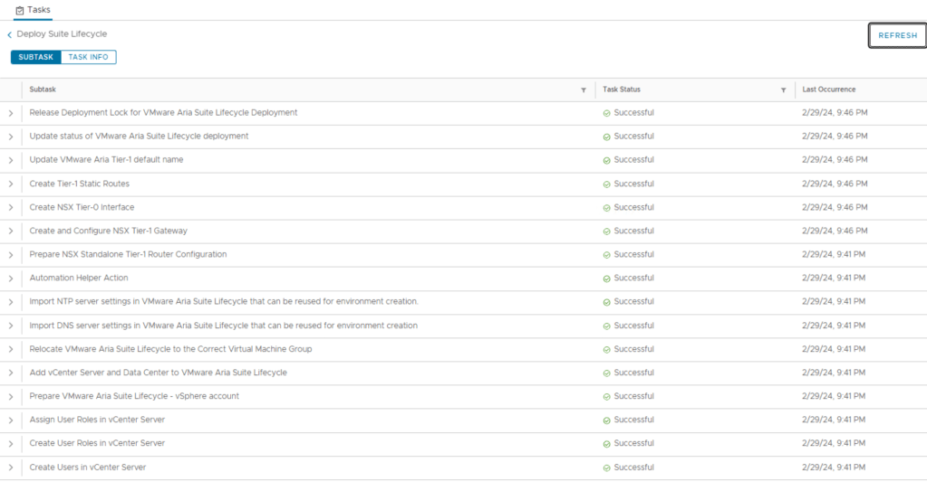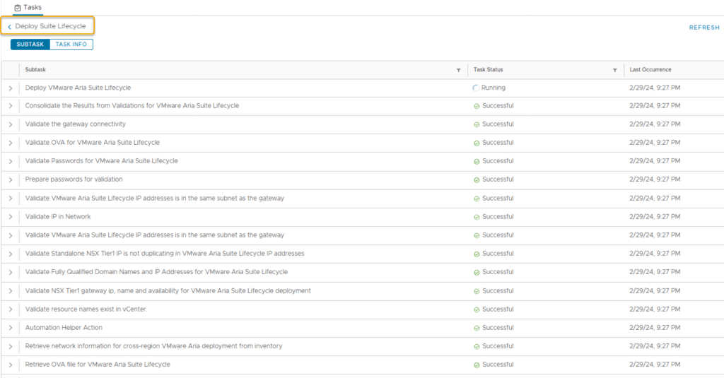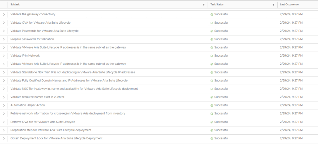 Details of tasks performed during the Aria Suite Lifecycle deployment: