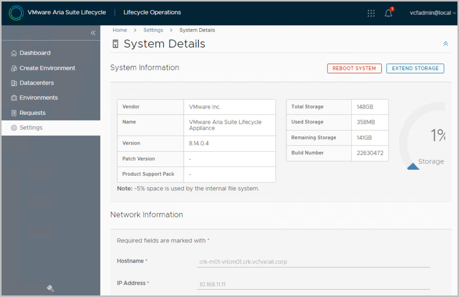 Next enter the Aria Suite Lifecycle vm appliance settings: