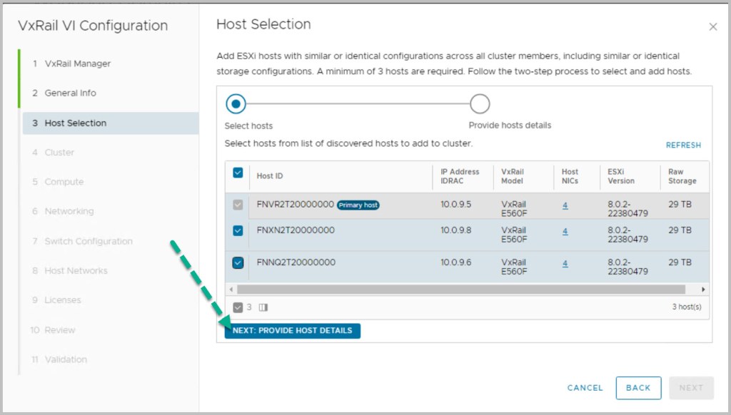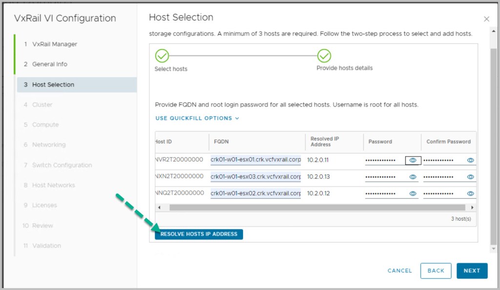 Change the VxRail Manger IP address & confirm discovery of hosts: