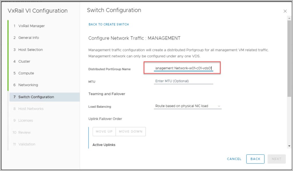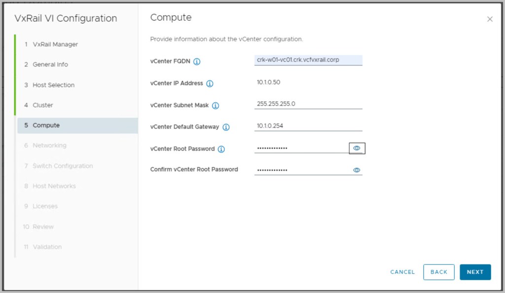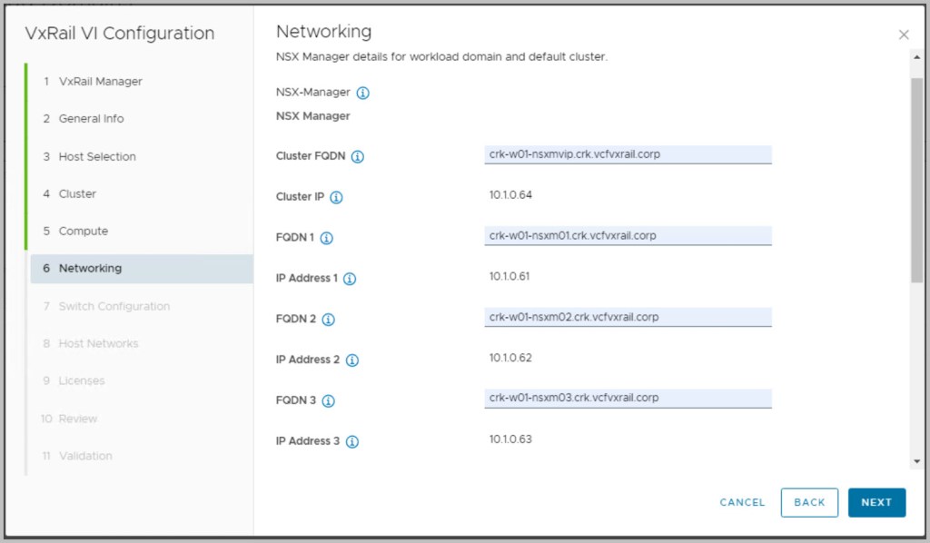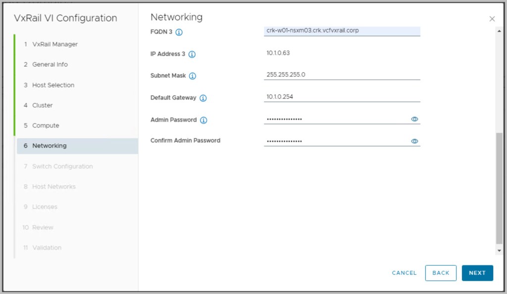 The following input values are required as per the process of creating a VI WLD from the SDDC Manager UI: