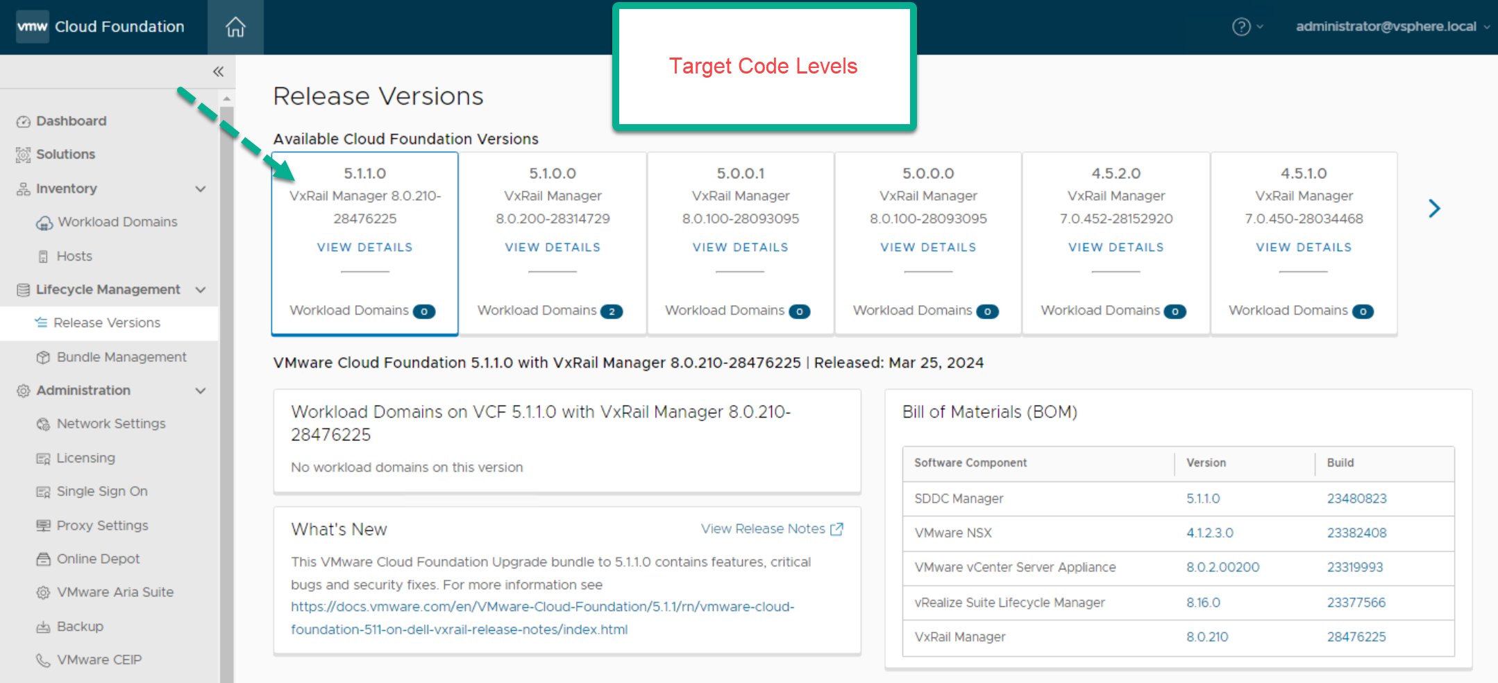 VMware: VCF 5.1.1 on VxRail Release Notes