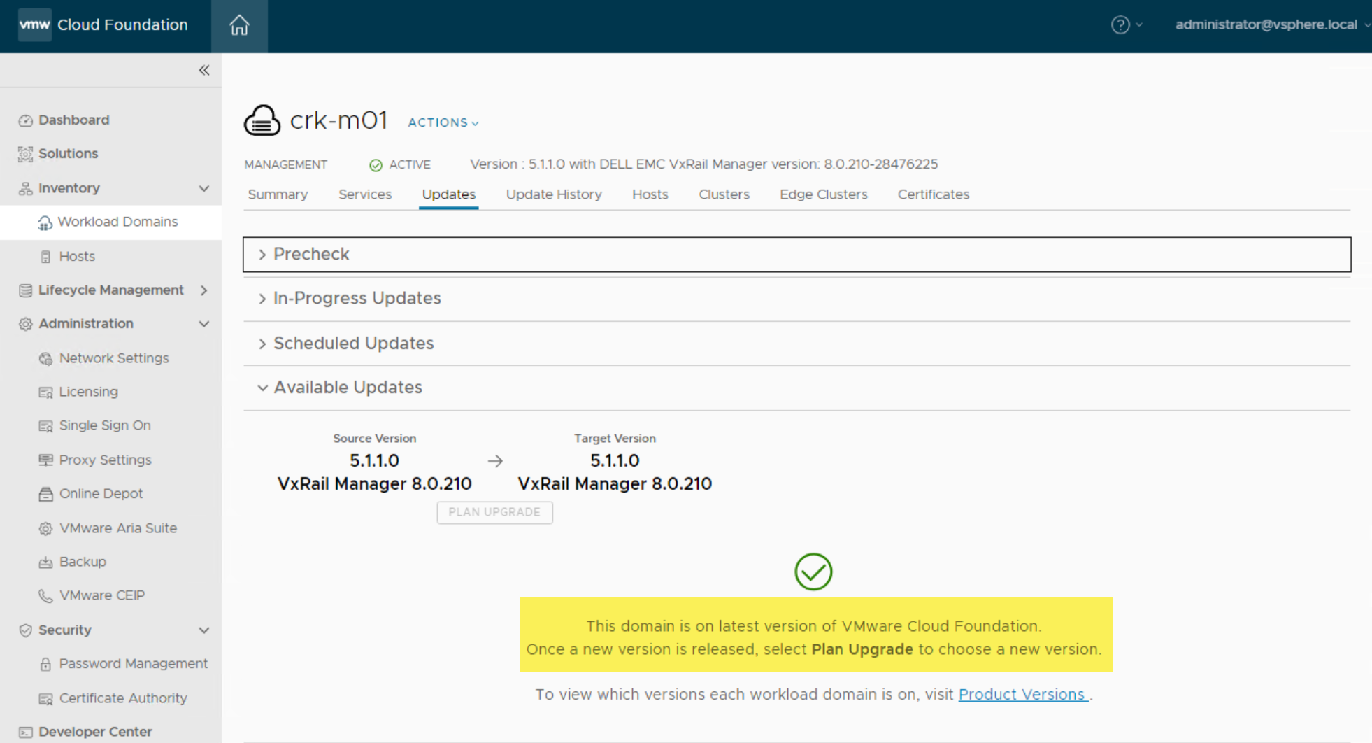 VCF on VxRail: 5.1 to 5.1.1 Upgrade (Part 1: Management WLD)