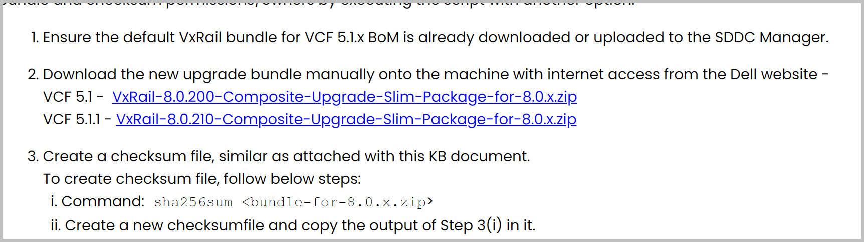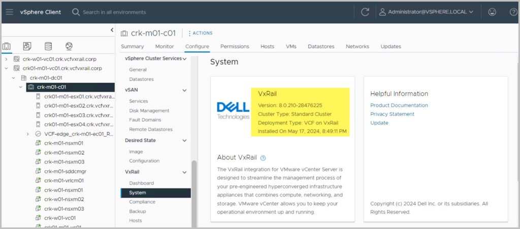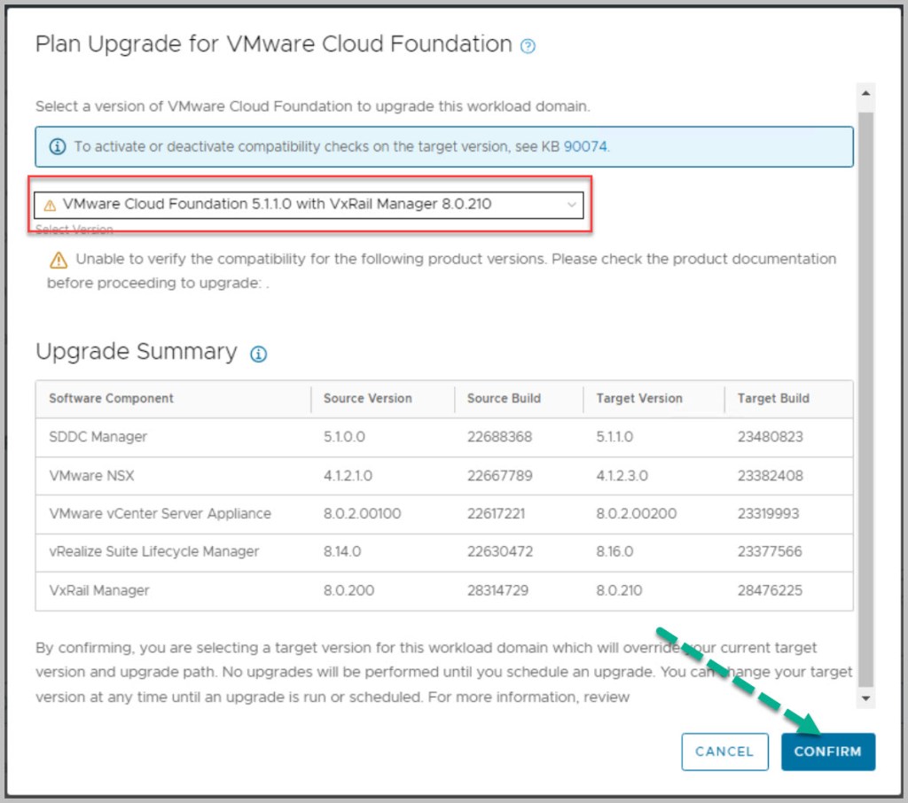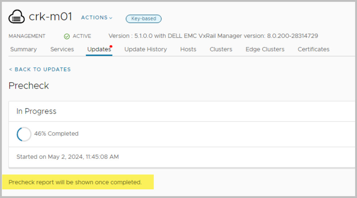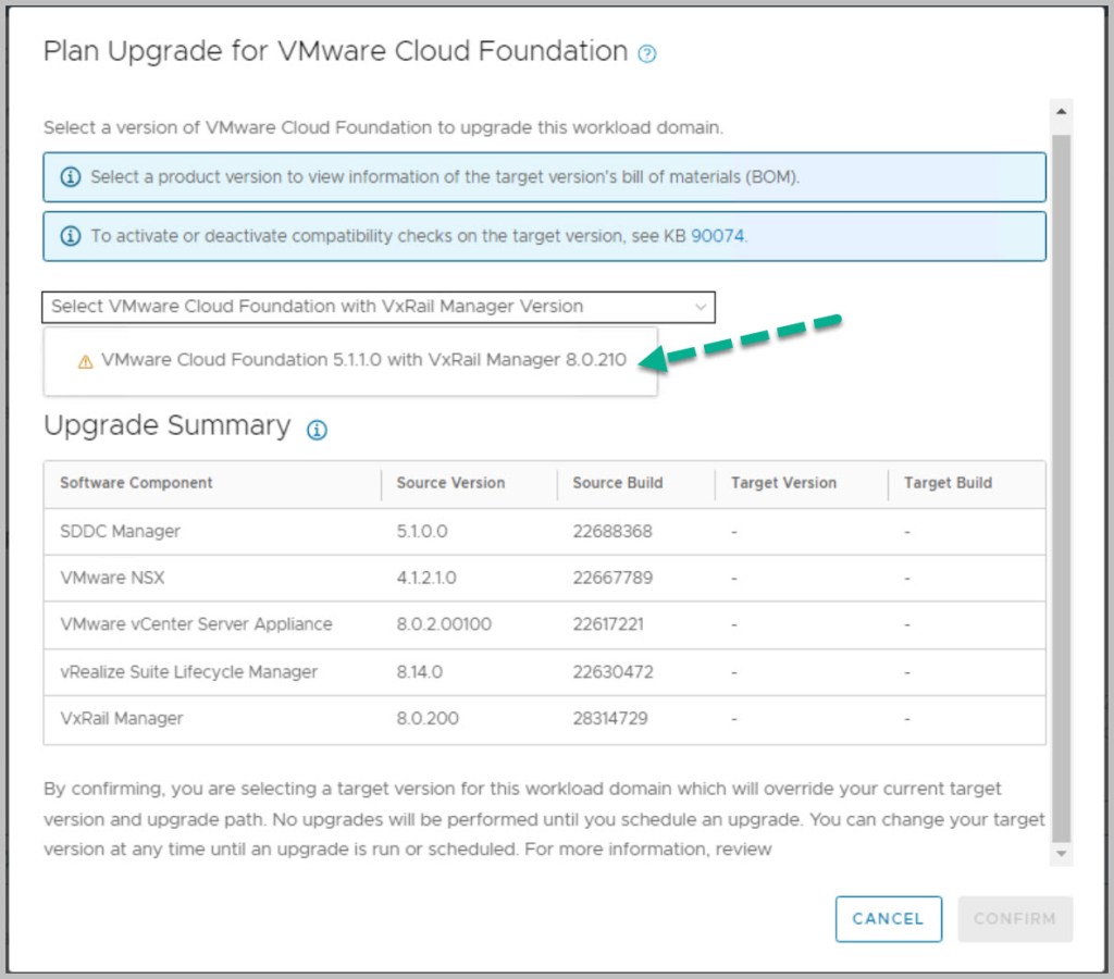 NOTE: In advance of completing the VxRail upgrade users are advised to follow the steps outlined in this KB article before initiating the upgrade process to ensure a smooth transition from VCF on VxRail 5.x to 5.y, and to avoid encountering the described error:
