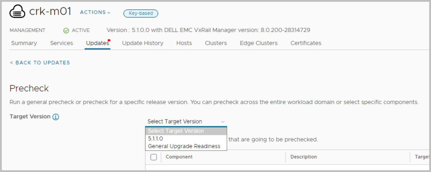 NOTE: In advance of completing the VxRail upgrade users are advised to follow the steps outlined in this KB article before initiating the upgrade process to ensure a smooth transition from VCF on VxRail 5.0.x to 5.1.x & 5.1.0 to 5.1.1 and to avoid encountering the described error:
