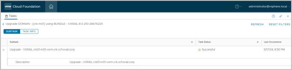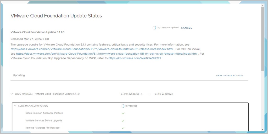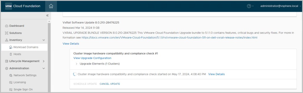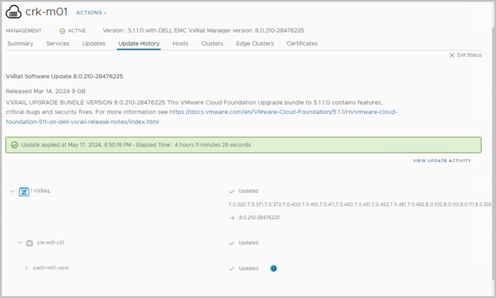 VCF 5.1 (VxRail 8.0.200) -> 5.1.1 upgrade (VxRail 8.0.210)