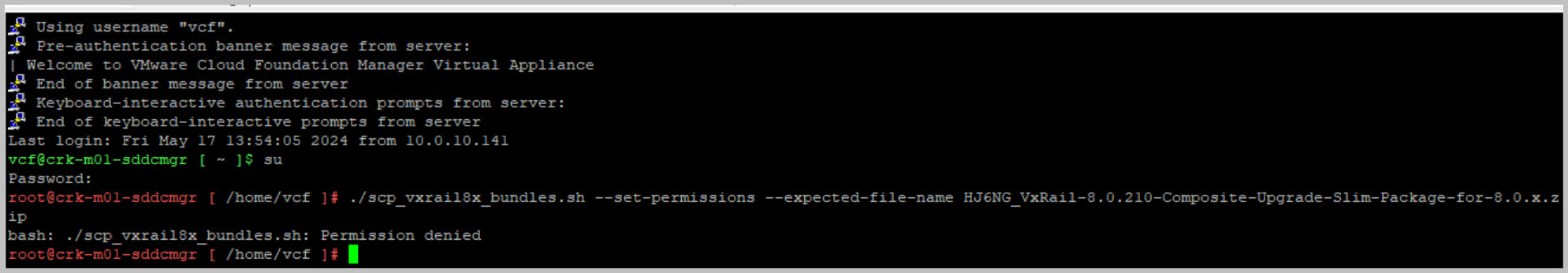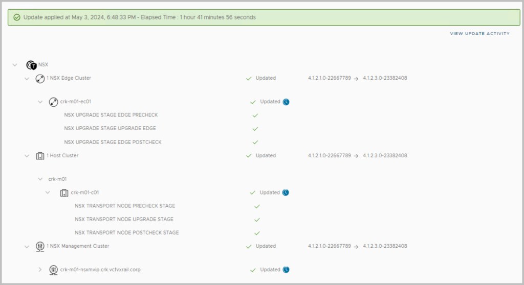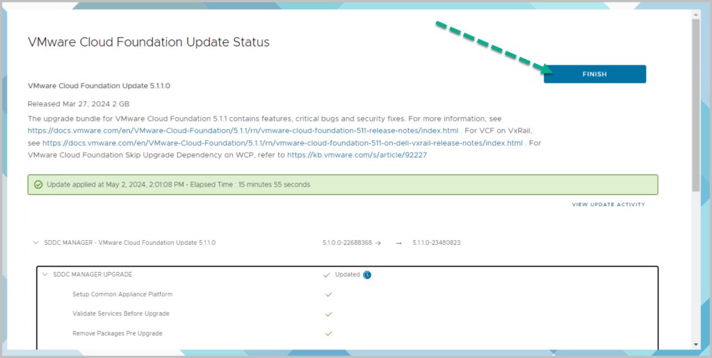 It is also possible to confirm a successful update via the SDDC manager ssh console: