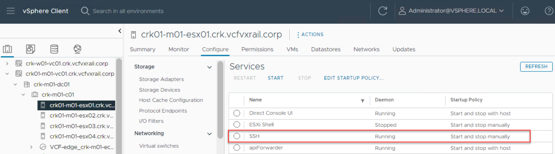 VCF On VxRail – Enable SSH on ESXi Hosts