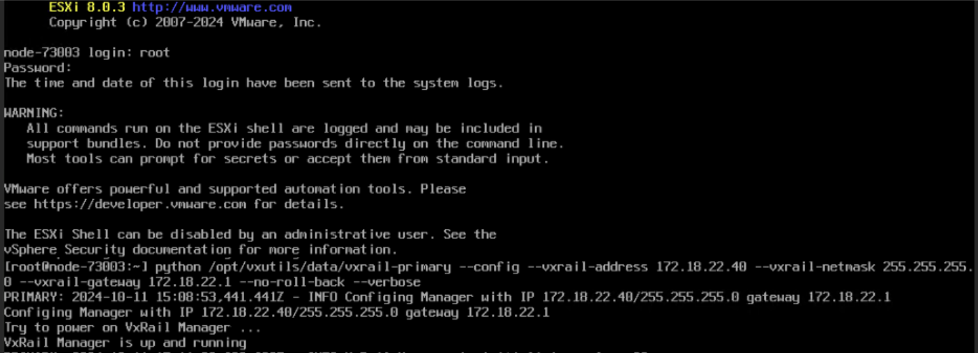 python /opt/vxutils/data/vxrail-primary --config --vxrail-address x.x.x.x --vxrail-netmask x.x.x.x --vxrail-gateway x.x.x.x --no-roll-back --verbose