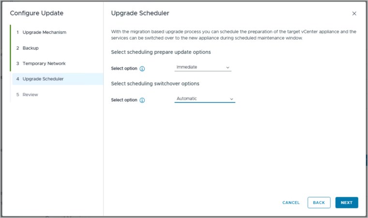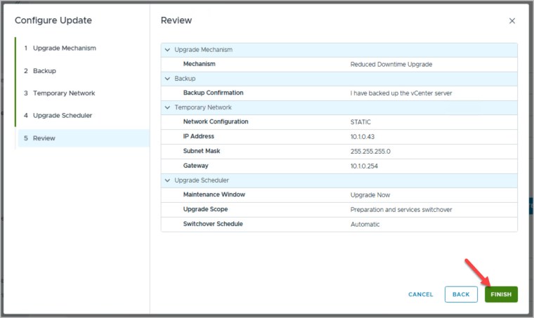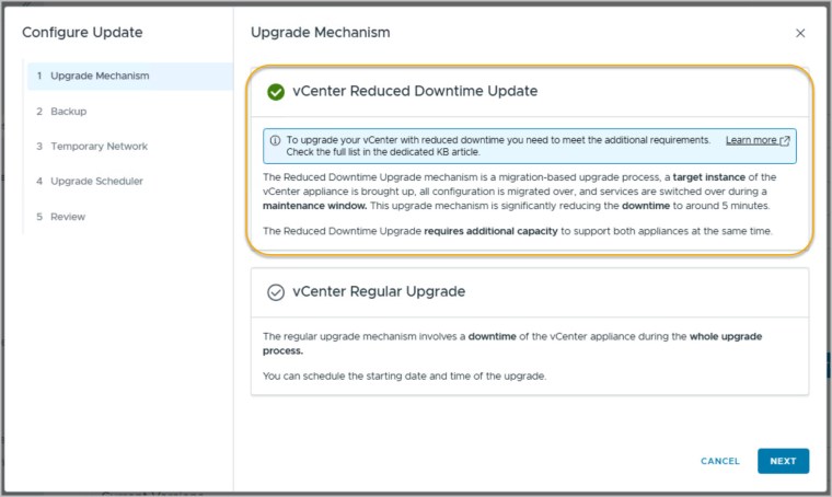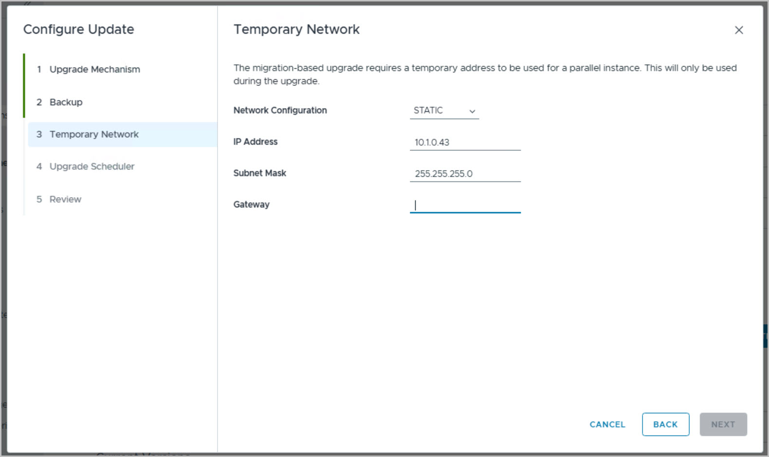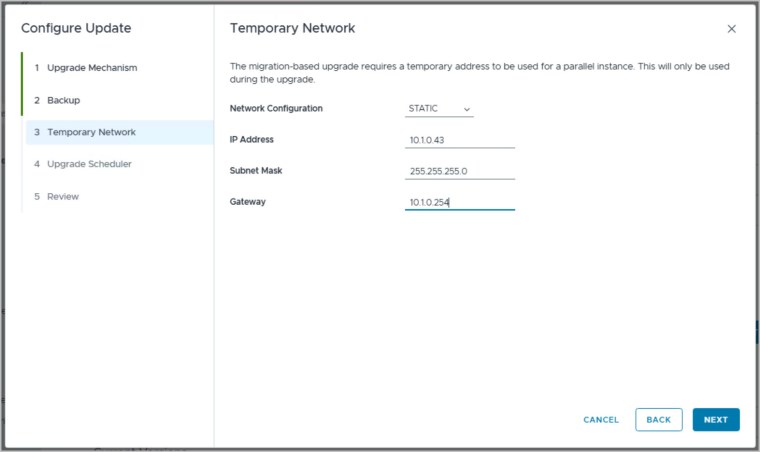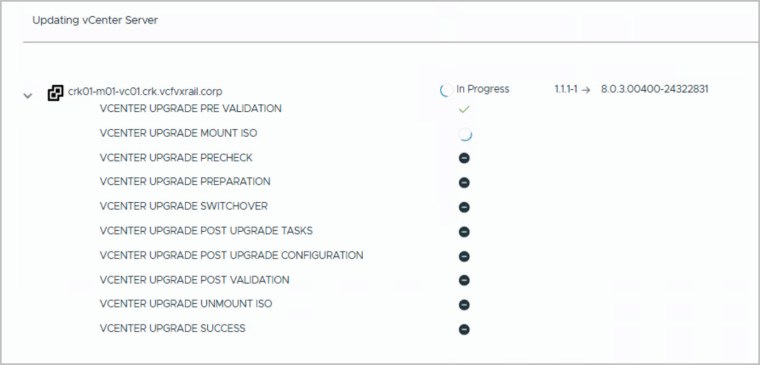 The following screenshot sequence demonstrates how to upgrade vCenter Server using the FlexBom patching workflow in a VCF on VxRail environment. In this scenario, we’re upgrading to vCenter Server 8.0 Update 3d ahead of a planned VxRail upgrade to version 8.0.322. To minimize service disruption, we leverage VMware’s RDU (Reduced Downtime Upgrade) feature, which significantly shortens vCenter downtime by preserving services and connections during the upgrade process. It’s important to note that RDU requires a temporary IP address to be assigned for the replication target this enables the new vCenter instance to synchronize data before the final cutover.