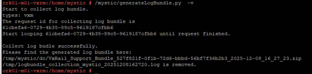 | Generate a full VxRail diagnostic log bundle | /mystic/generateFullLogBundle |