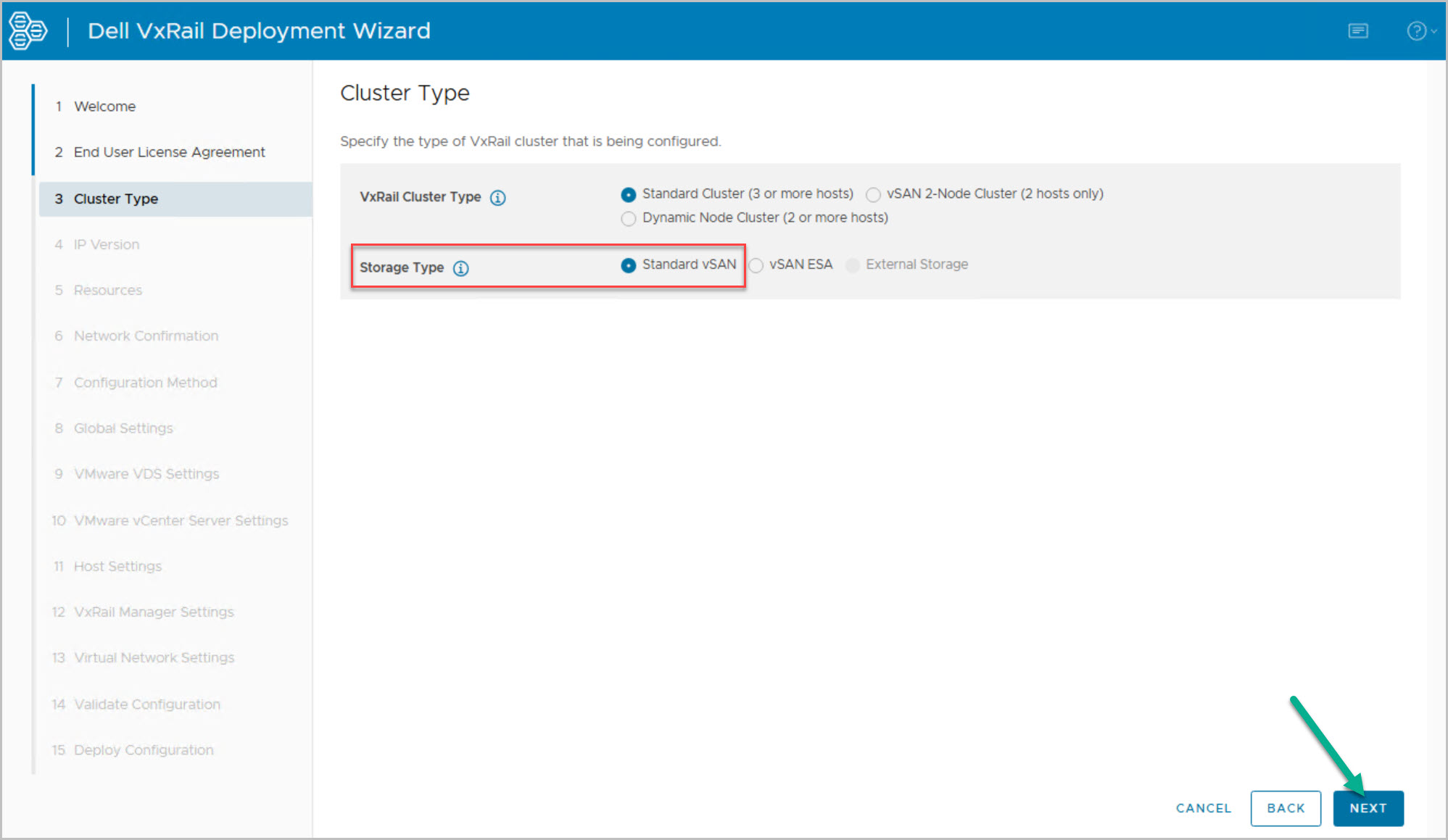Starting with VxRail version 8.0.300, users can choose their preferred Lifecycle Management (LCM) mode—either Legacy LCM or vLCM—during the initial setup. In this example I have chosen to enable vLCM in the Mgmt WLD. vLCM can be enabled on both OSA & ESA clusters but it is important to note if the management cluster is an ESA cluster then you must enable vLCM. Included in this release 8.0.361 is the option to set a gateway entry for vSAN.
