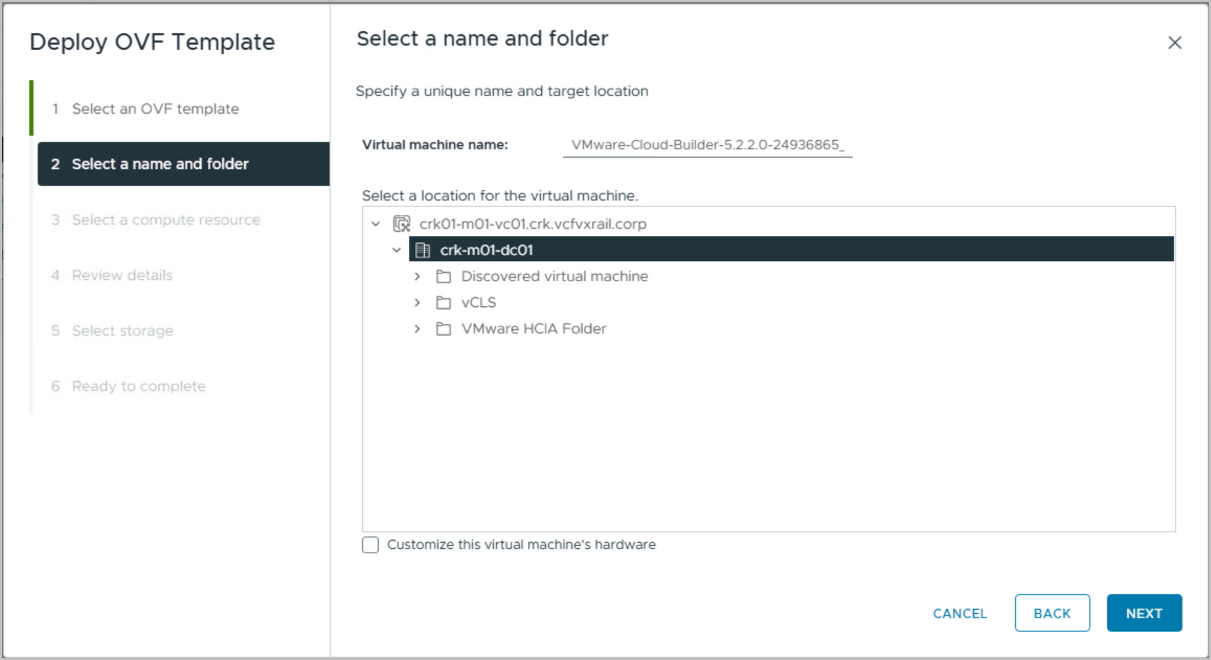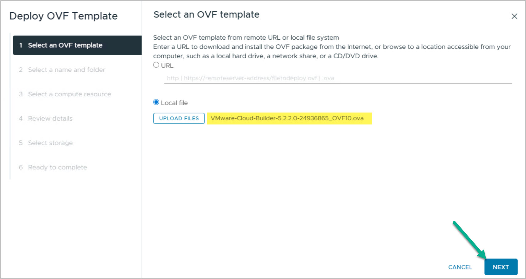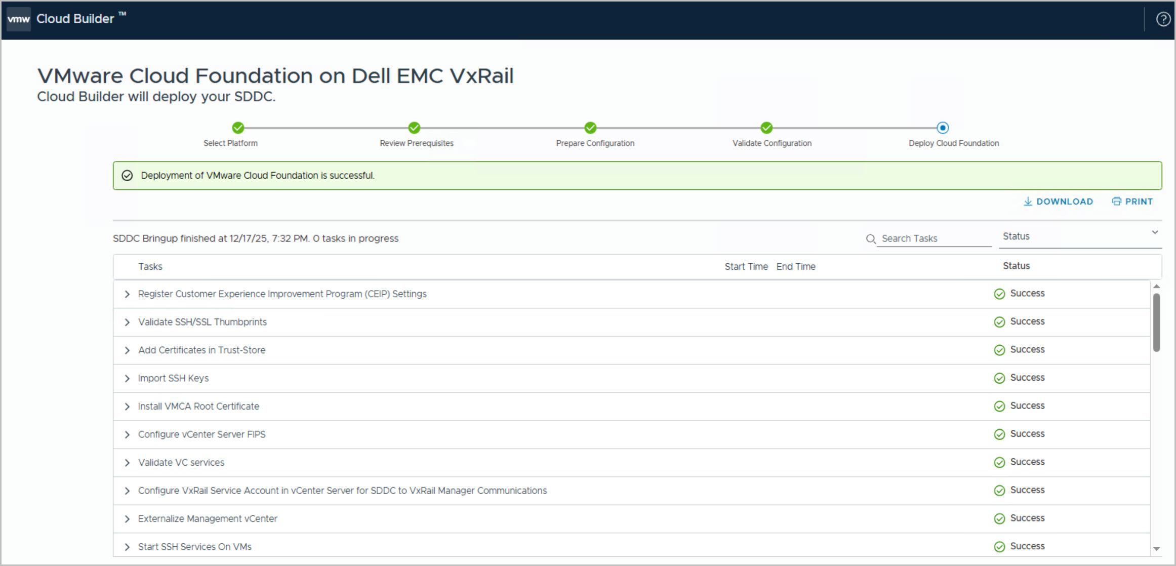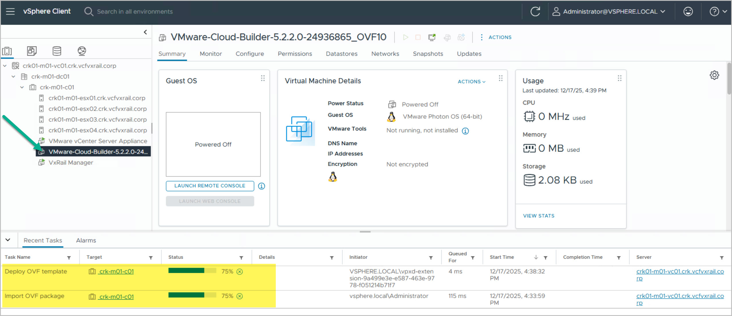 VCF on VxRail is deployed using VMware Cloud Builder, which can be downloaded as an OVA file from Broadcom support site and deployed as outlined below: