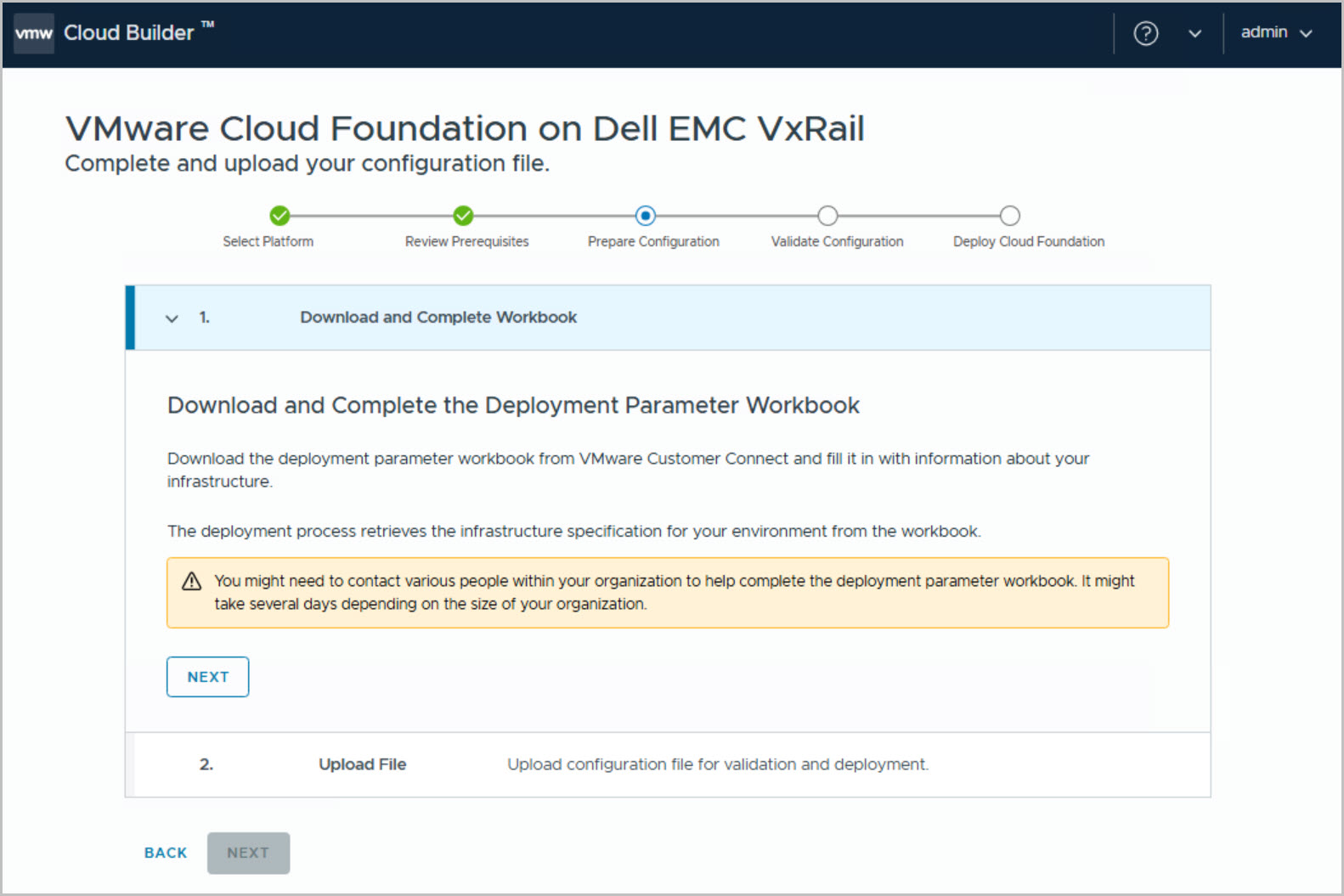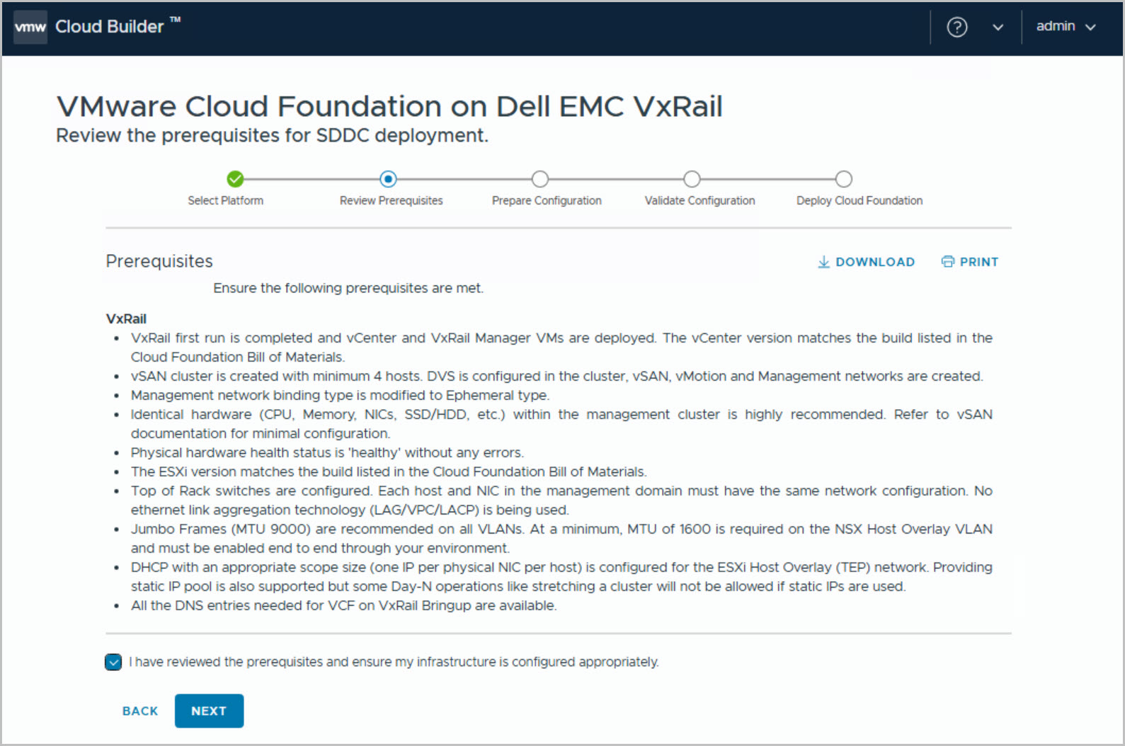 This section outlines the VCF on VxRail Bring-Up process. At this stage, the Cloud Builder VM has been deployed, powered on, and the user has logged into the Cloud Builder UI. The next steps are as follows: