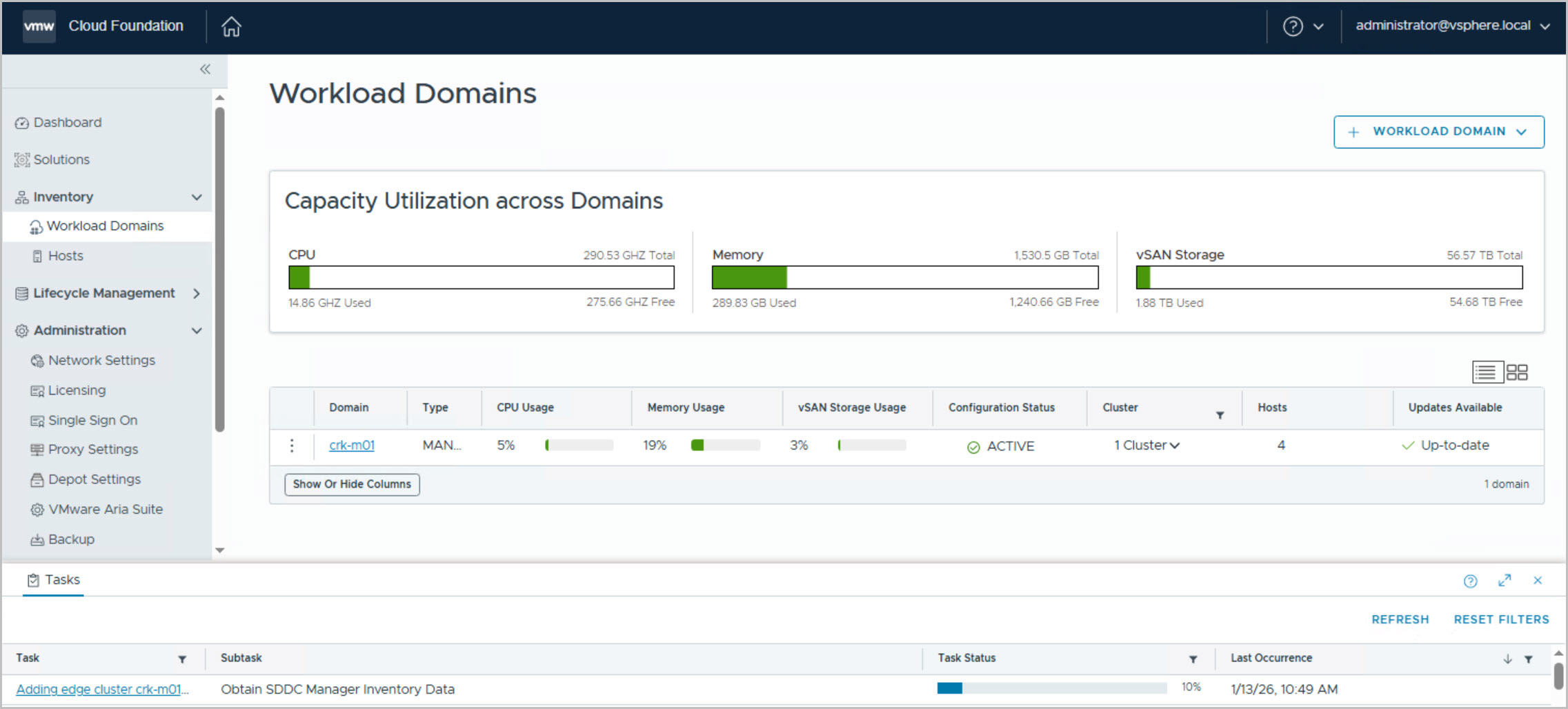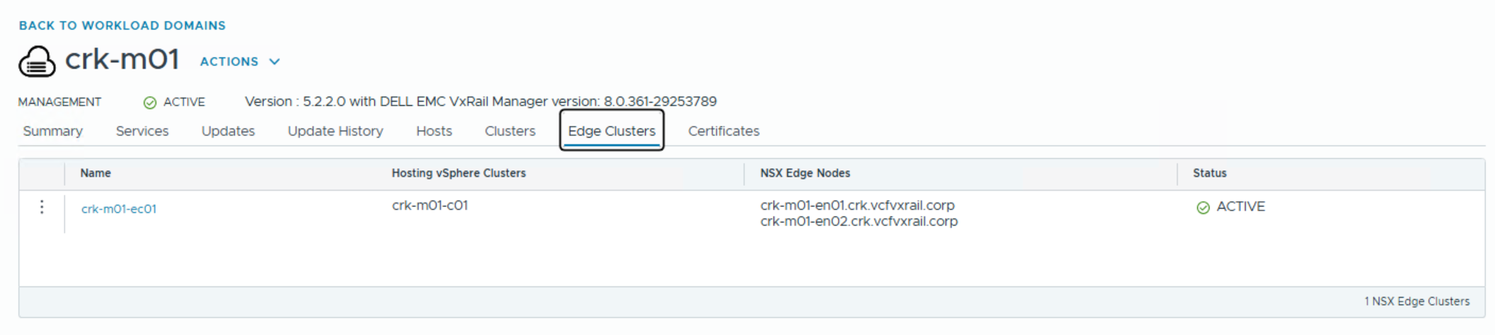 Go to SDDC Manager UI Select Inventory > Workload Domains Click on the name of the Management domain. Select Actions > Add Edge Cluster: