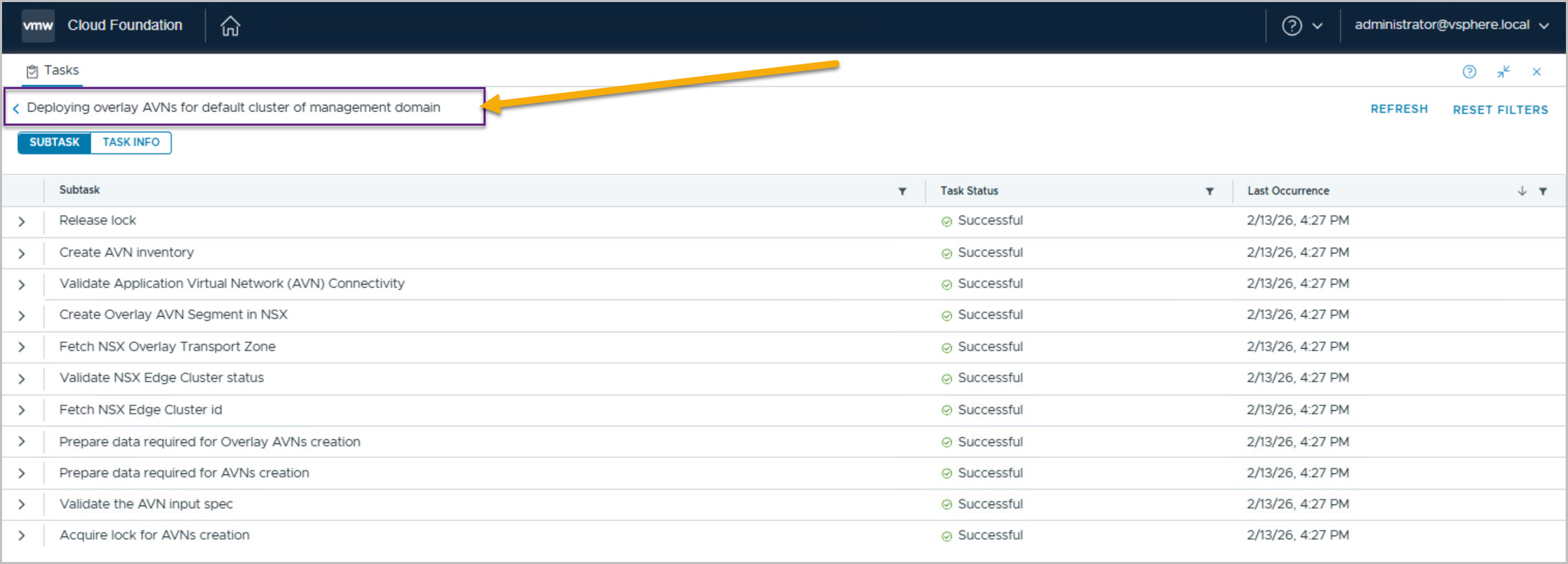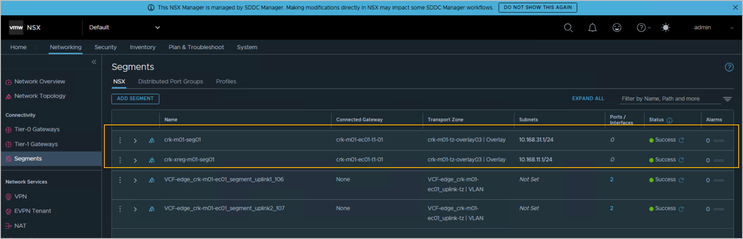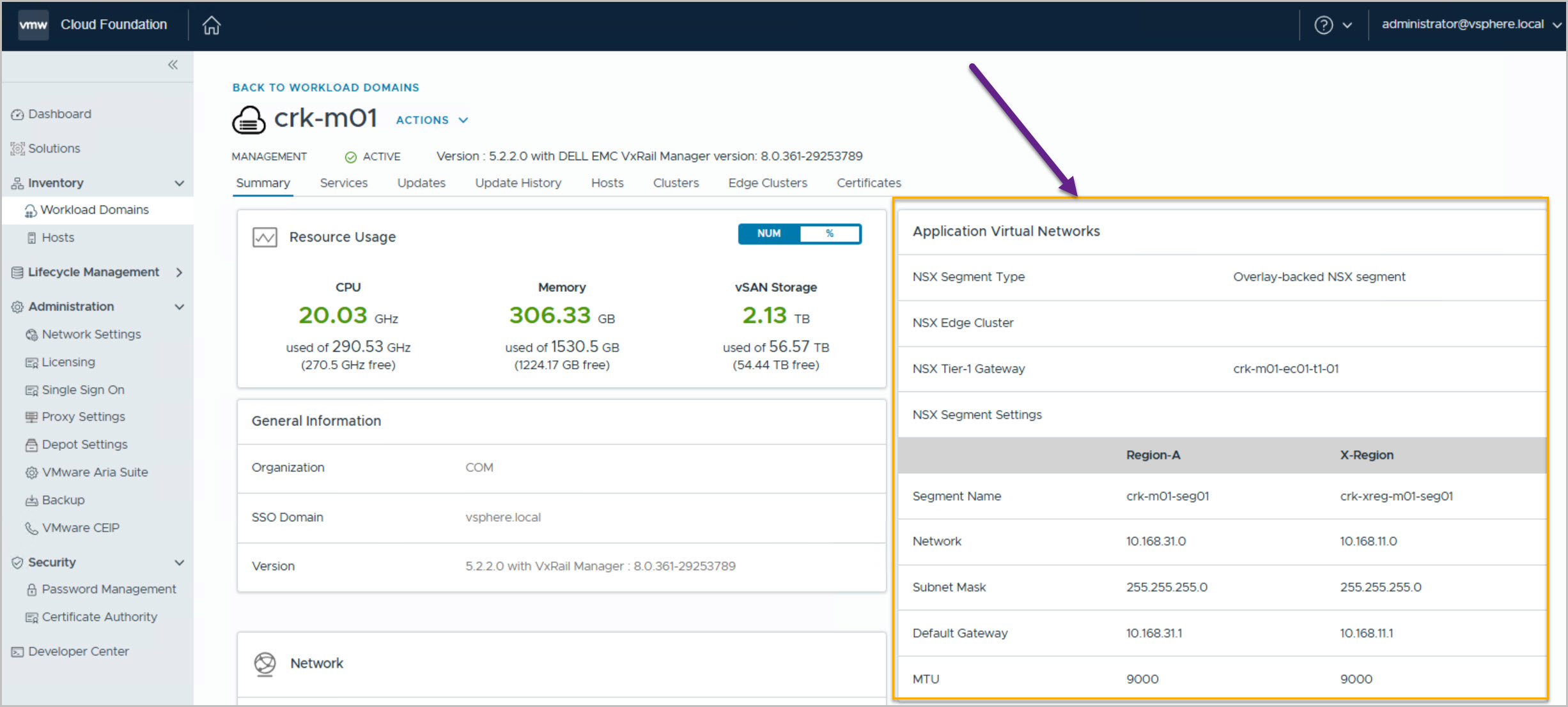 On completion we can view the newly deployed and configured AVNs from both the vCenter & SDDC Manager UI: