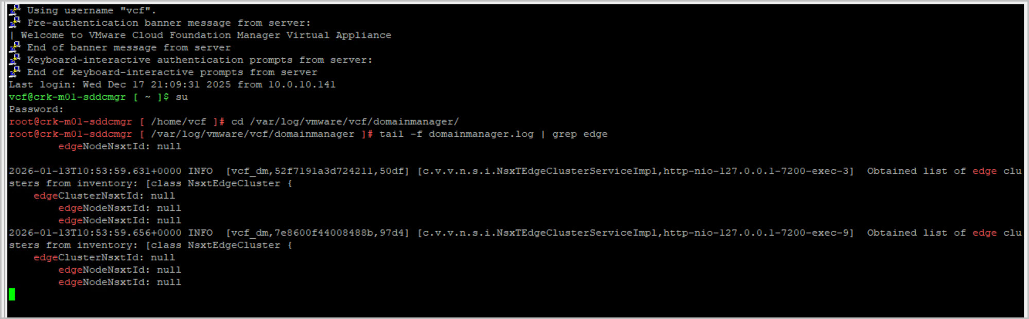 On completion we can view the newly deployed and configured NSX Edge Cluster from SDDC UI, vCenter & NSX UI & Dell Switch CLI: