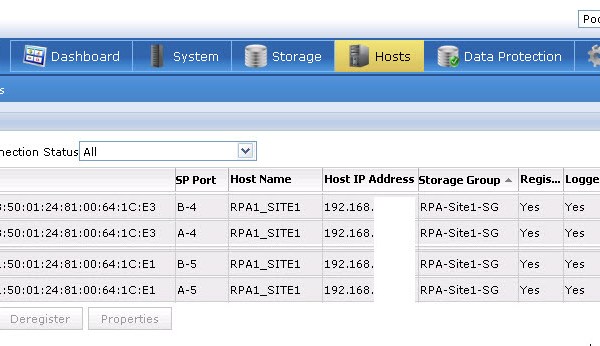 The VNX will have been previously zoned to the RPAs at this stage. For example purposes the config below will have the RPA1-port-3 Zoned to the VNX SP-A&B Port 4 […]